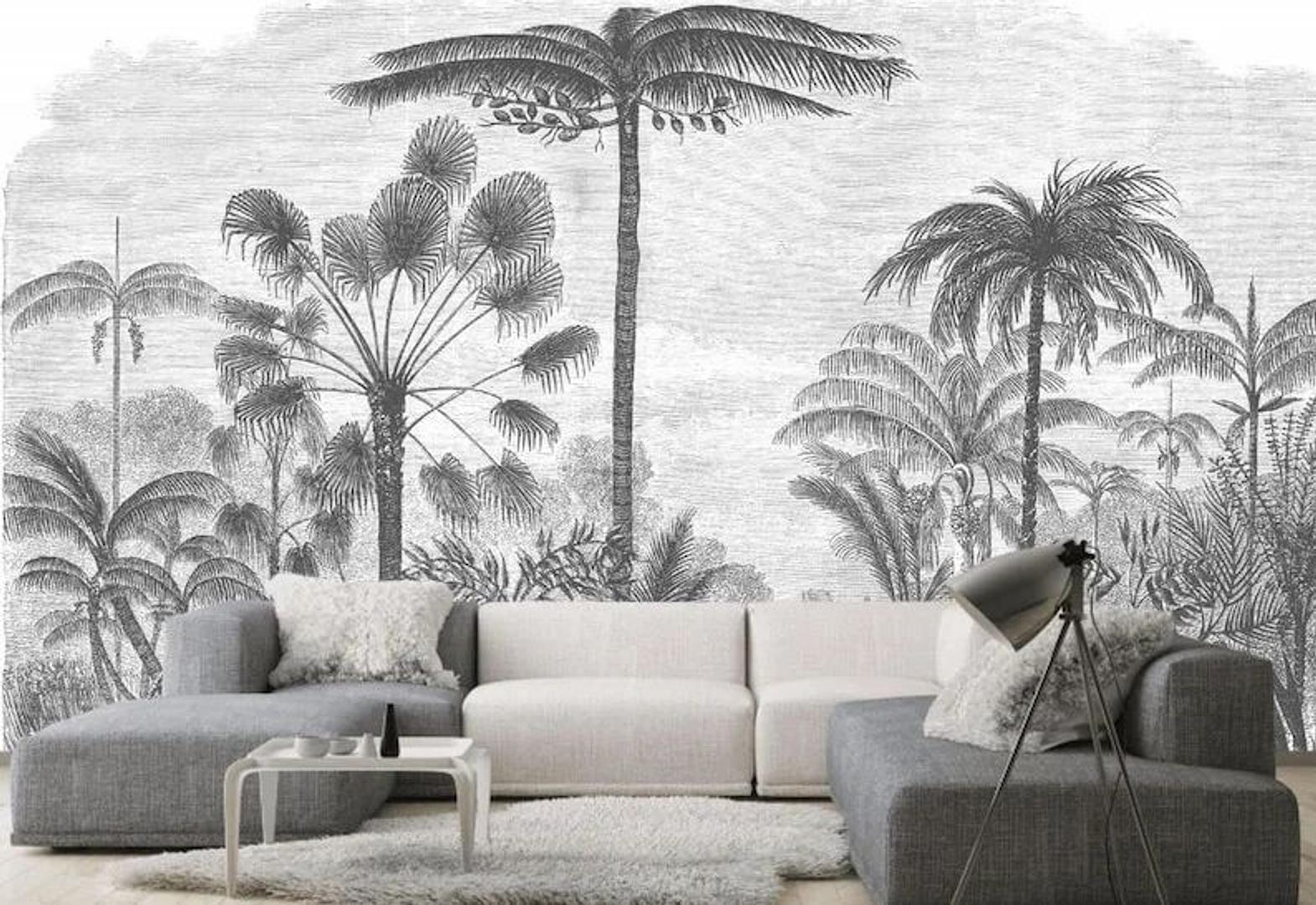 Inspired by the lush landscapes of tropical paradises, this wallpaper seamlessly blends the vibrant beauty of the tropics with the timeless elegance of monochrome design.